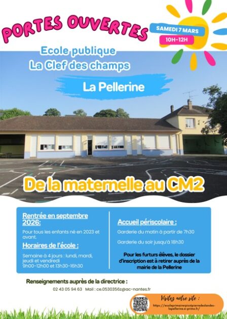Portes ouvertes Portes ouvertes Le 07 mars 2026 10h00 Localisation 53220 La Pellerine, France Pays de la Loire